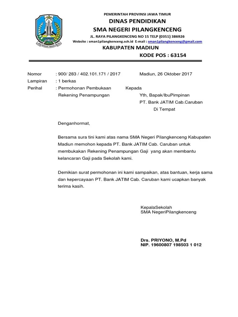 Surat Permohonan Pembukaan Rekening Bank Jatim Untuk Sekolah - Eprints Perbanas Ac Id / Contoh surat permohonan pembukaan rekening kop madrasah no :